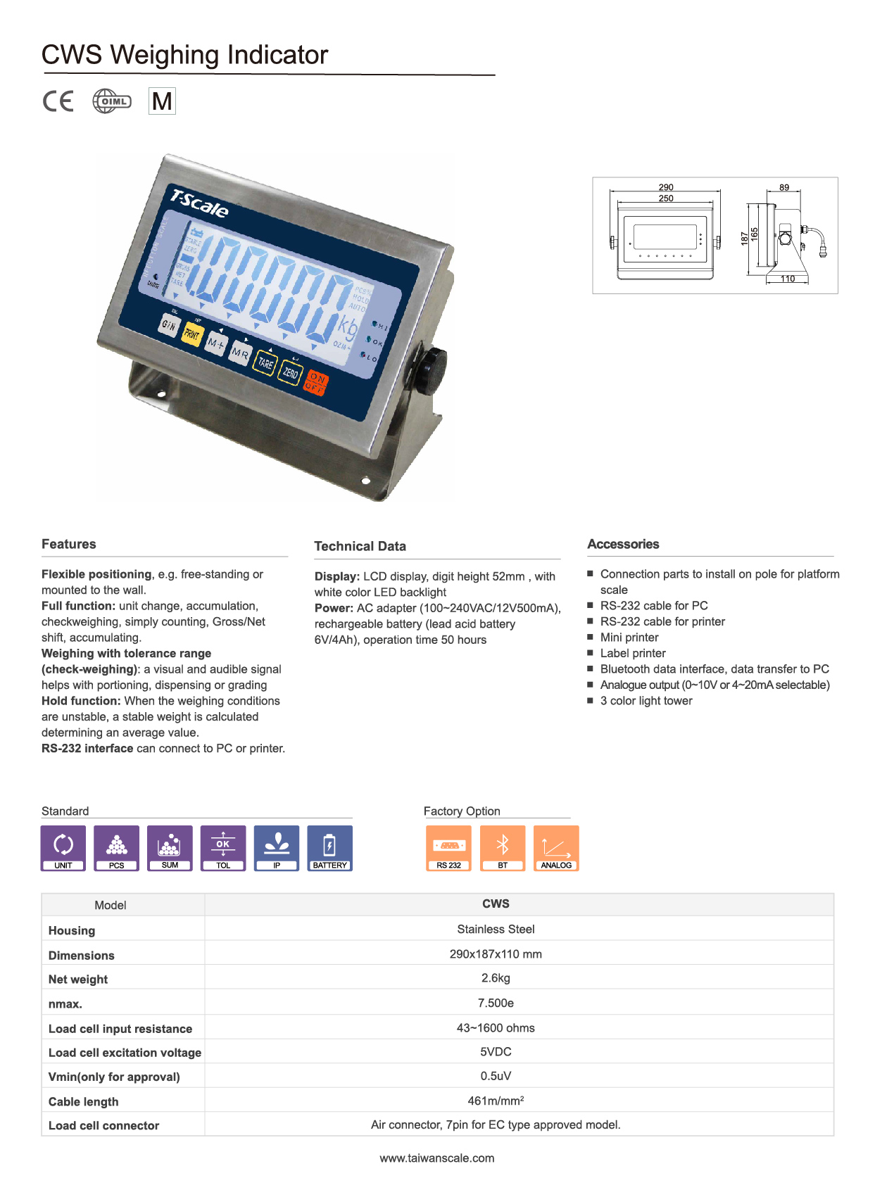 Approvals: OIML, NTEP